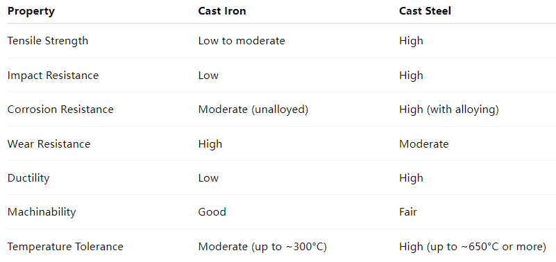 Cum ad mechanicam observantiam venit, ferrum outperforms ferrum in omni fere aspectu conjecit. Ferrum iactum ostendit vires distrahentes superiores, impactionem resistentiam, et duritiem. Hae proprietates bene aptam faciunt ad ambitus summus pressurae et summus temperatus, necnon applicationes ad impulsum et vibrationem mechanicam subiectam.