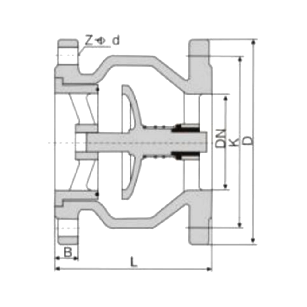 Discus valvae ab axe centrali ad utrumque extremitatem limbi et exitus dirigitur, flexibiliter aperiens et claudens, ac horizontaliter vel verticaliter institui potest. Plectrum discus ver-onustus est, eiusque occlusio celeris malleolum pressionis aquae efficaciter reducere potest, cum bona obsignatione ac strepitu nullo claudente. Repugnans et longa opera vitae gerunt.